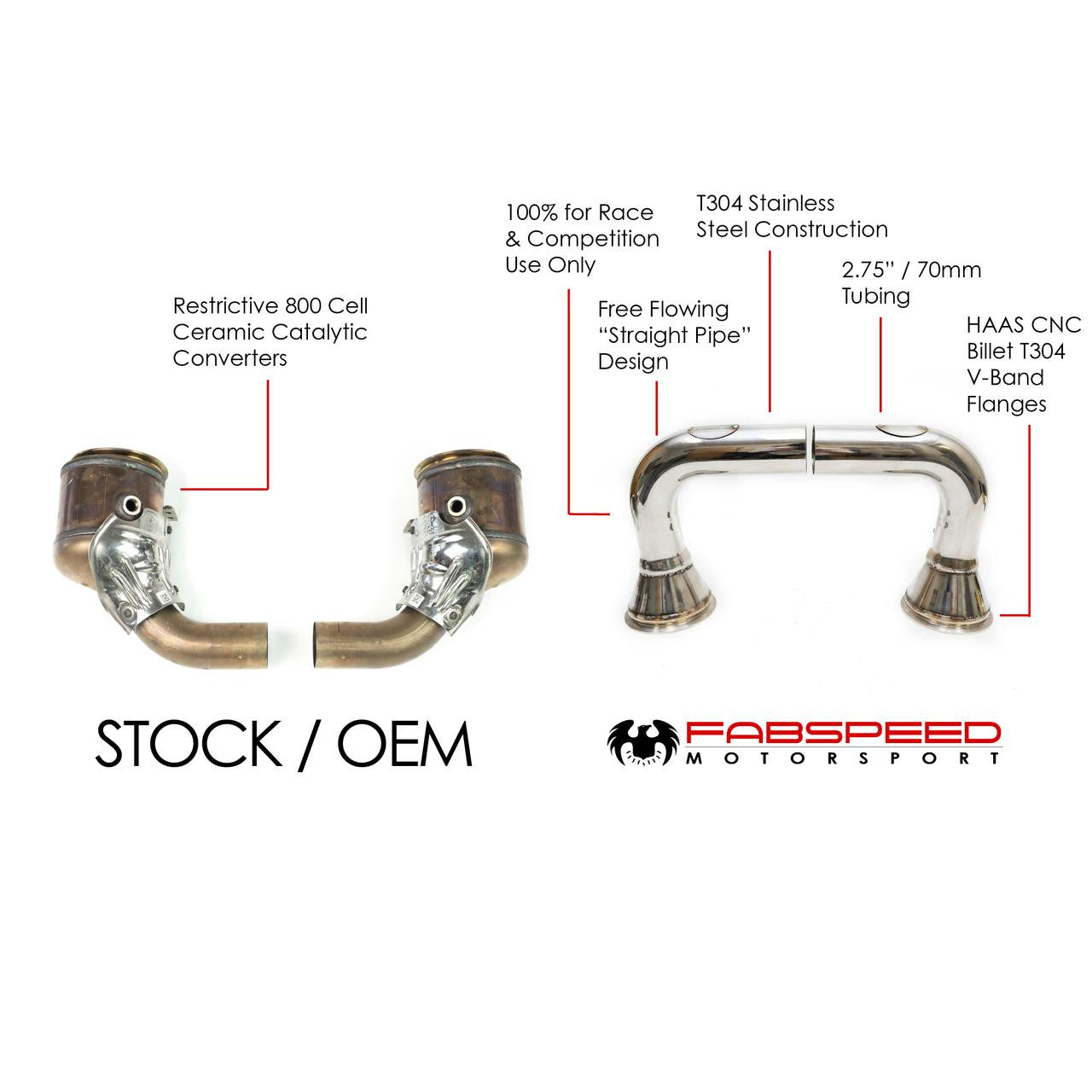 - Fabspeed Race Competition pipes can be installed in under 2 hours for “OFF-ROAD Competition Racing Events Track Days.” Easy-on / Easy-off for weekend warriors / Drivers.